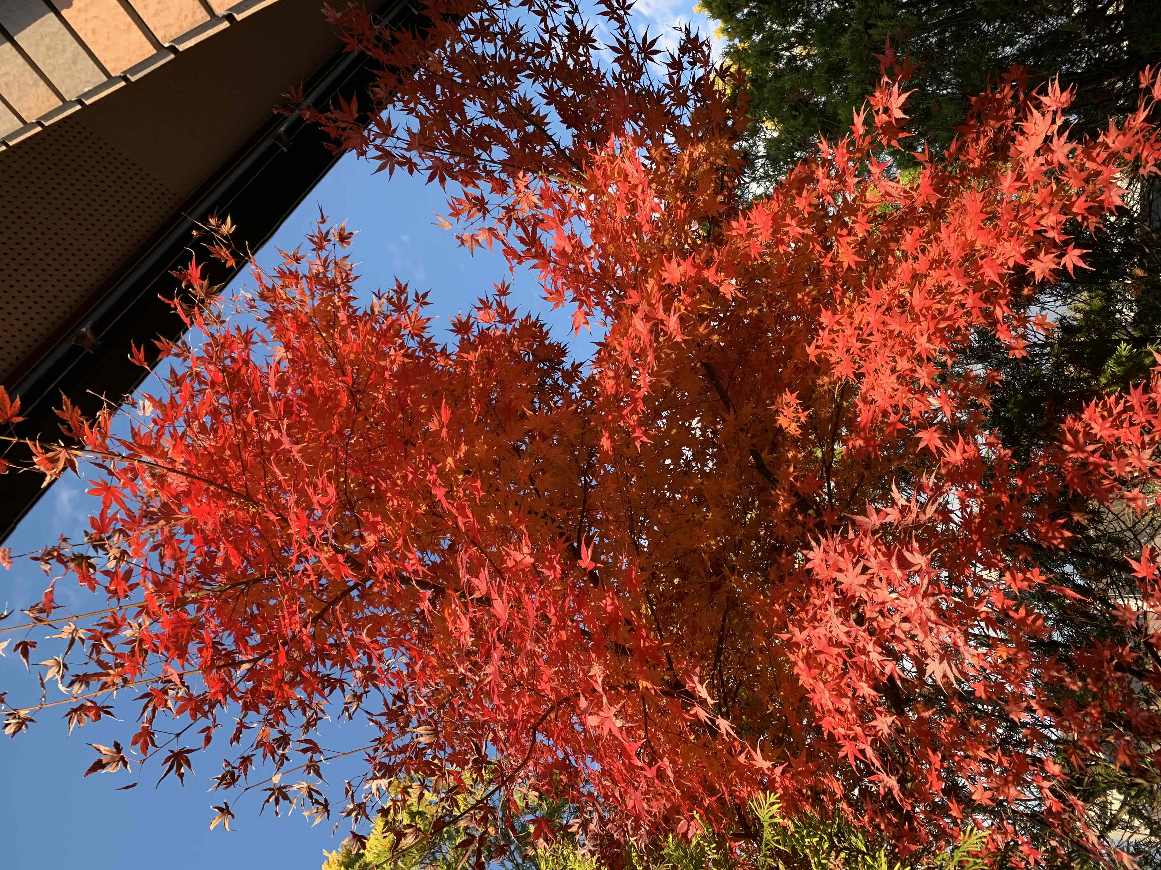 我が家のもみじが赤くなりました |